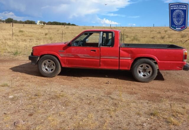 Uno de ellos, es una pick up, Mazda, modelo 1992, color rojo, localizada abandonada en la carretera Cuauhtémoc – Anáhuac.