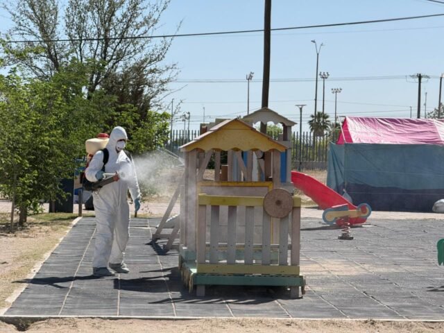 El Gobierno del Estado, a través del Distrito de Salud II Juárez, realizó una jornada de fumigación en las instalaciones del Parque Central, para fortalecer las medidas preventivas y brindar mejores condiciones a las familias que visitan diariamente este espacio.