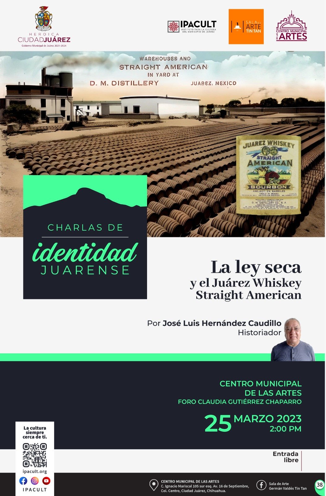 El tema inicial será La ley seca y el Juárez Whiskey Straight American, con el ponente José Luis Hernández Caudillo, integrante del grupo de promotores de los historia El Juárez de Ayer.