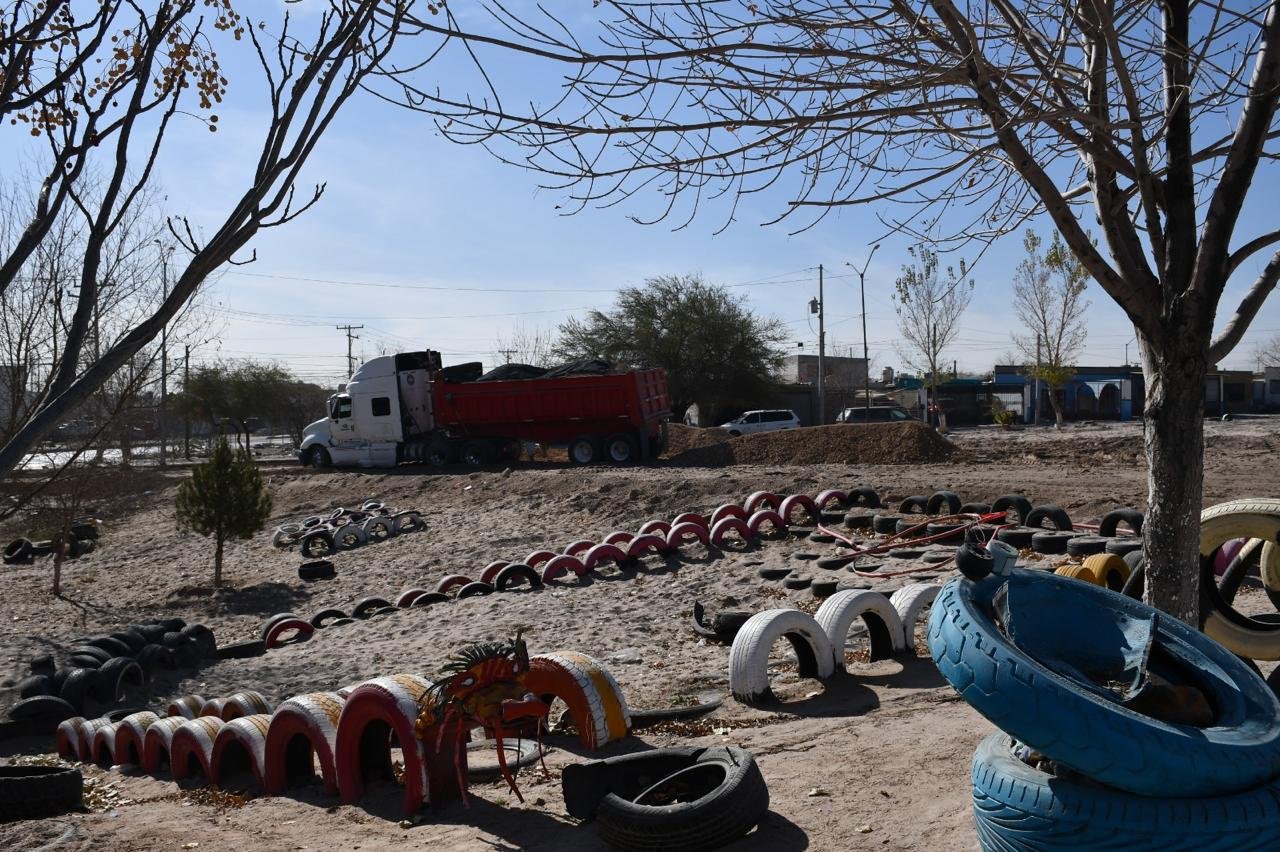 Daniel González García, titular de la dependencia, detalló que las actividades iniciaron con las demoliciones y el retiro de una cantidad importante de llantas del parque, el cual está ubicado entre las calles Puerto Anzio y Portal del Ebano.