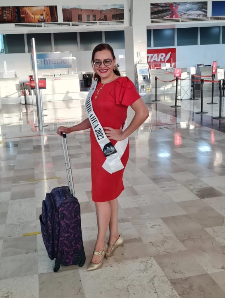 La noche de este domingo 29 de mayo, Reina Castro partió desde Ciudad Juárez a Tijuana, donde participará en la edición nacional del Certamen Señora México Internacional 2022, en el cual representa al estado de Chihuahua.
