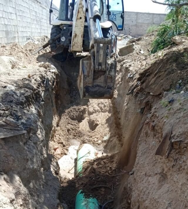 Debido a lo anterior, la J+ responde a la solicitud de ayuda por parte de la ciudadanía que reside en los alrededores del cruce Libramiento Aeropuerto y Juárez Porvenir, con la colocación de aproximadamente 50 metros de tubería de 18 pulgadas de diámetro.