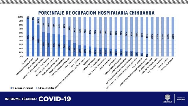 En similares circunstancias se encuentran el Hospital General de Chihuahua, que reporta una ocupación del 91%, seguido del ISSSTe de Delicias (80%) y el ISSSTE de Lázaro Cárdenas (62%) como los más ocupados del estado.