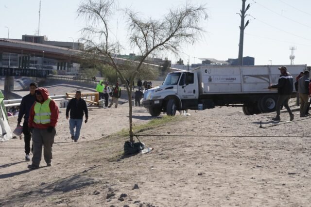 “Luego de que un juez pidiera la eliminación del Título 42 en Estados Unidos, muchos migrantes de Venezuela cruzaron el río Bravo para entregarse a la patrulla fronteriza, por lo que se procedió a limpiar para no generar un foco de infección o riesgo de incendio”, dijo Santiago González Reyes, director de Derechos Humanos del municipio.