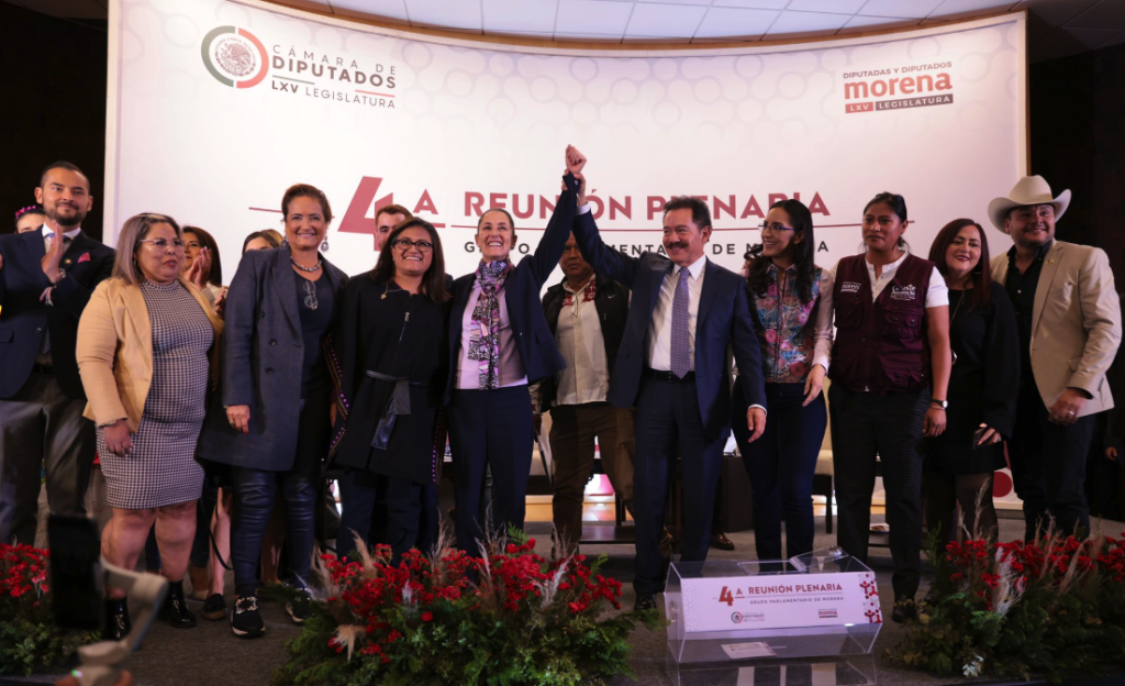 MÉXICO- Se llevó la 4ta Reunión Plenaria de Morena en el Auditorio Aurora Jiménez, en la Cámara de Diputados, en San Lázaro. Estuvieron presentes la jefa de gobierno de la Ciudad de México, Claudia Sheinbaum Pardo y el titular de la Secretaría de Gobernación (Segob) Adán Augusto López. También el diputado del Partido del Trabajo, Gerardo Fernández Noroña y el presidente de la Junta de Coordinación Política del Senado de la República, Ricardo Monreal Ávila. Además del Canciller, Marcelo Ebrard Casaubón.