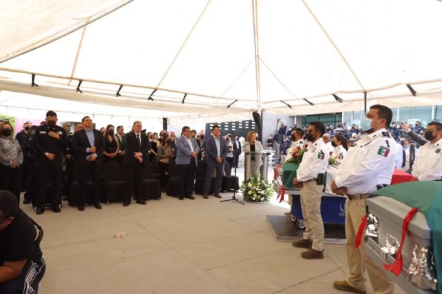 Durante el homenaje a los tres elementos, estuvo el secretario de Seguridad Pública Municipal, César Omar Muñoz Morales, el coordinador Estatal de la Guardia Nacional en el Estado de Chihuahua, Víctor Fernández Mondragón, el secretario de Seguridad Pública Estatal, Gilberto Loya Chávez, y el delegado federal en el estado, Juan Carlos Loera de la Rosa, entre otras autoridades de los tres órdenes de gobierno.