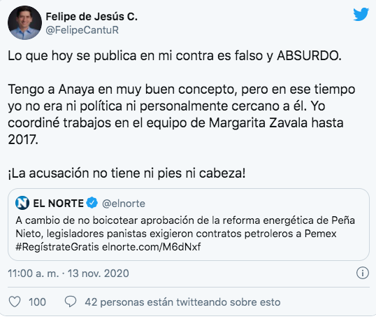 Mientras que Felipe de Jesús aclaró que en este tiempo no era ni política ni personalmente cercano a Ricardo Anaya.