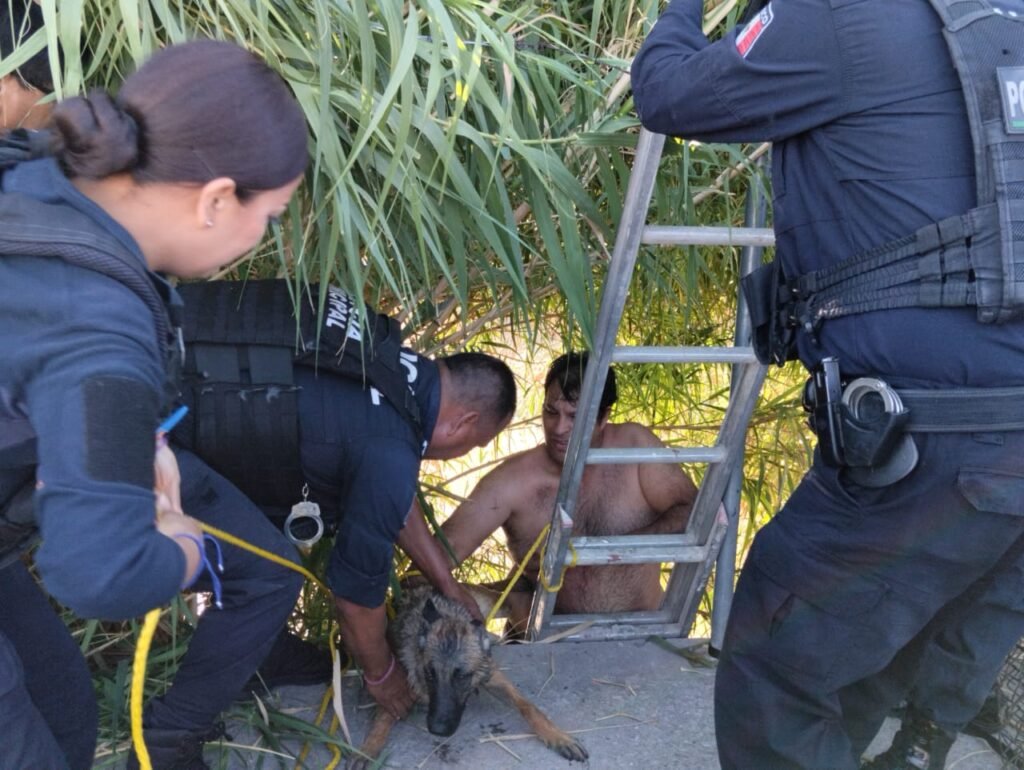 Elementos de la Secretaría de Seguridad Pública Municipal adscritos al Distrito Universidad, realizaron el resguardo de un masculino que había ingresado a un canal de agua para rescatar a un perro.