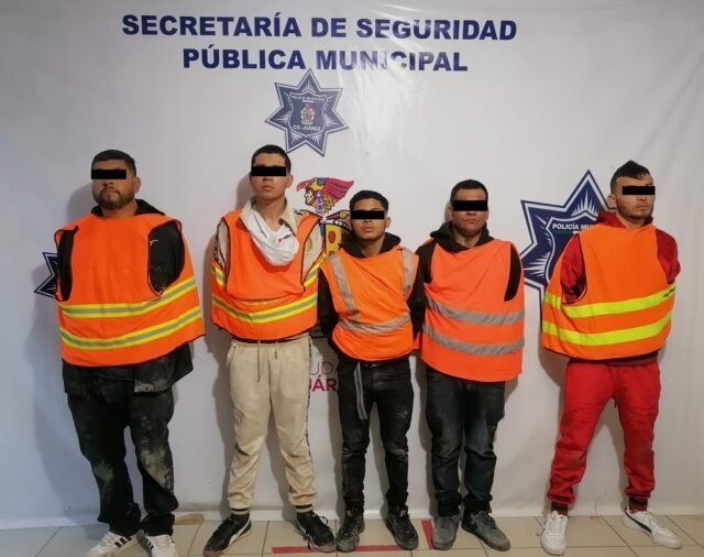 Agentes de la Secretaría de Seguridad Pública Municipal capturaron a José Ángel M. H. de 19 años, Frannkkeny M. G. de 24 años, Mario P. S. de 43 años, Jesús Guerrero A. R. de 31 años y Chayanne Fernando C. G. de 35 años, por su presunta responsabilidad en la comisión de delitos contra la salud y delitos contra la ley federal de armas de fuego y explosivos.