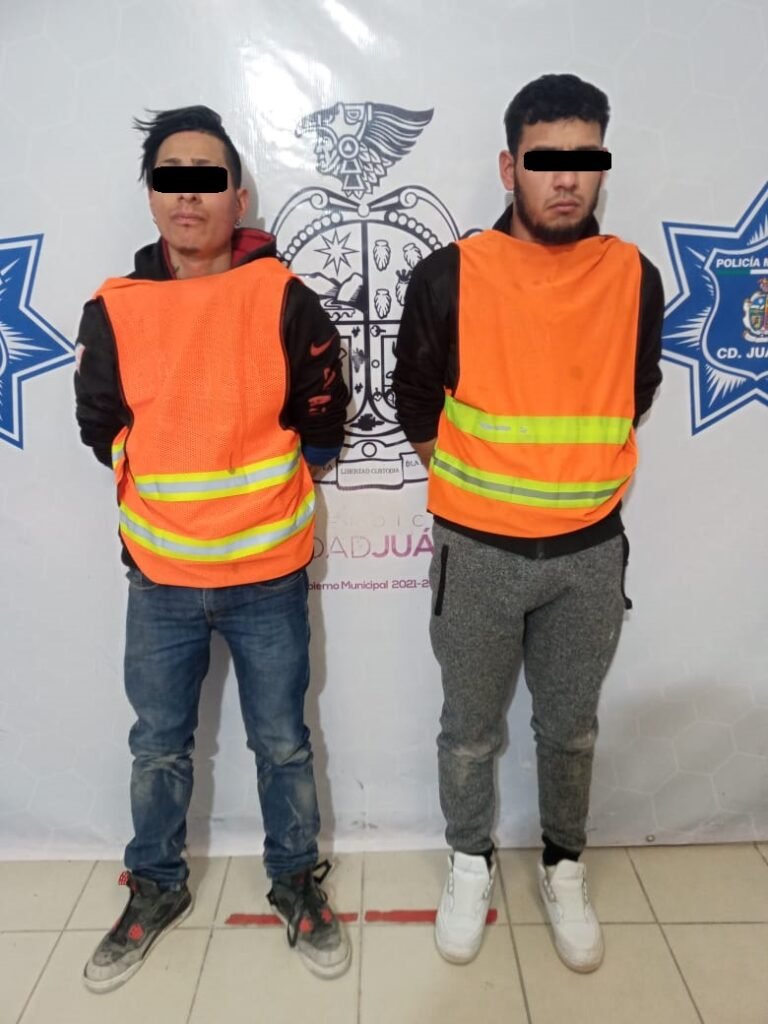 Agentes de la Secretaría de Seguridad Pública Municipal arrestaron a Isaac R. y Edgar Fernando S. T., por su presunta responsabilidad en la comisión de delitos contra la ley federal de armas de fuego y explosivos.