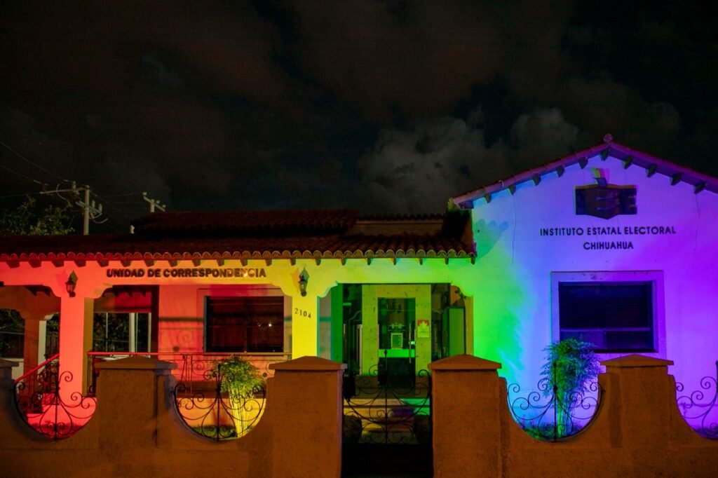 En apoyo a la población de la diversidad sexual y para conmemorar el 28 de junio, Día Internacional del Orgullo LGBTTTIQ+, las instalaciones del Instituto Estatal Electoral de Chihuahua (IEE), se iluminaron con la bandera del arcoíris, esto en el marco del 25 aniversario de la institución.
