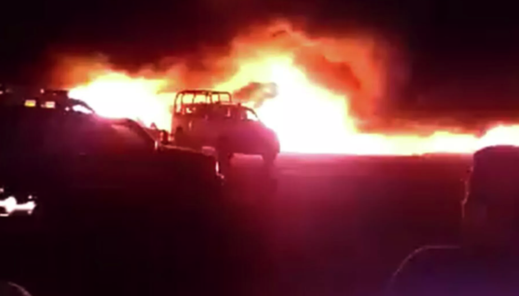 De acuerdo con los primeros reportes, el incendio inició en un bodega donde los elementos de la Guardia Nacional resguardaban cartuchos de arma de fuego, lo que generó que el fuego de extendiera de forma rápida.