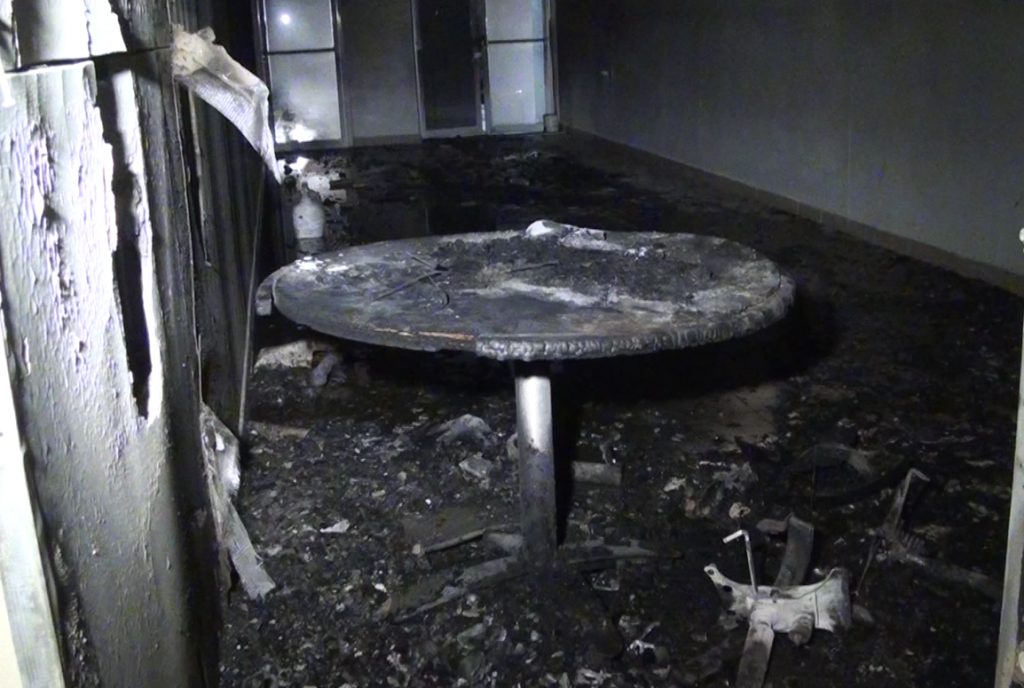 El incendio destruyó una mesa y una silla además de ocasionar daños a la parte superior de la estructura.