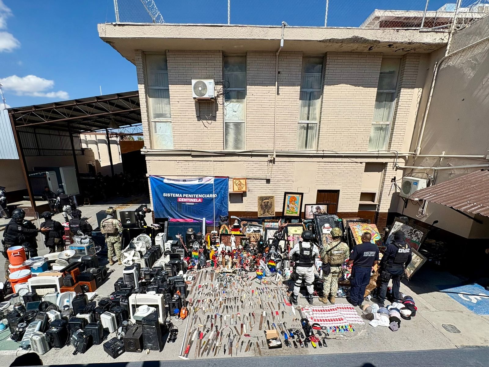 La acción se realizó en coordinación con autoridades de los tres niveles de gobierno, con el objetivo de detectar y extraer objetos no permitidos y/o prohibidos, además de mantener la gobernabilidad, estabilidad y seguridad en los Centros Penitenciarios del Estado de Chihuahua.