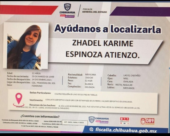 Se solicita ayuda a la comunidad por parte de la familia de zhadel Karime Espinosa Atienzo ya que desde el dia de ayer perdieron contacto con ella.