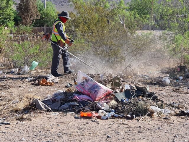 Mientras que los trabajadores de la Dirección de Parques y Jardines, en coordinación con cuadrillas de Limpia, limpiaron y cortaron maleza en el espacio del evento y en un predio aledaño.