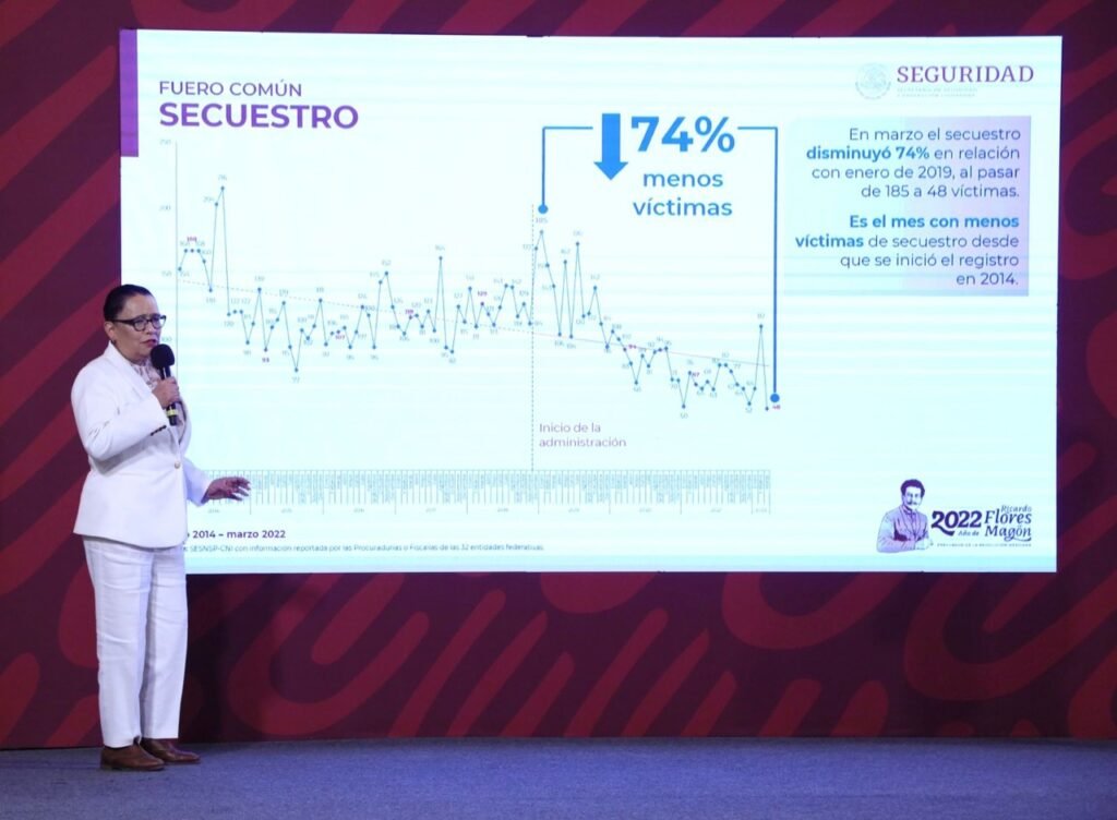 En marzo, el secuestro en el país registró la cifra más baja de víctimas de los últimos 10 años, reportó este miércoles la titular de la Secretaría de Seguridad y Protección Ciudadana (SSPC), Rosa Icela Rodríguez, quien explicó que la disminución alcanzó el 74% en relación con enero de 2019, cuando se registró la cifra más alta del actual sexenio, al pasar de 185 a 48 víctimas.