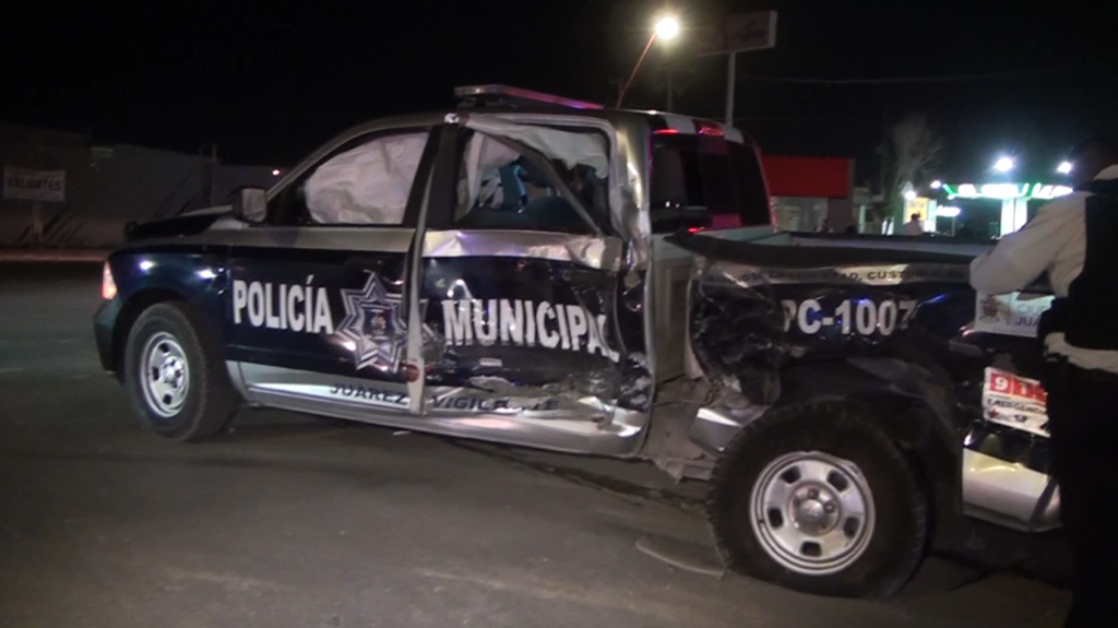 Una patrulla de la Policía Municipal y otro vehículo fueron chocados durante una persecución la noche del miércoles con saldo de varios lesionados.