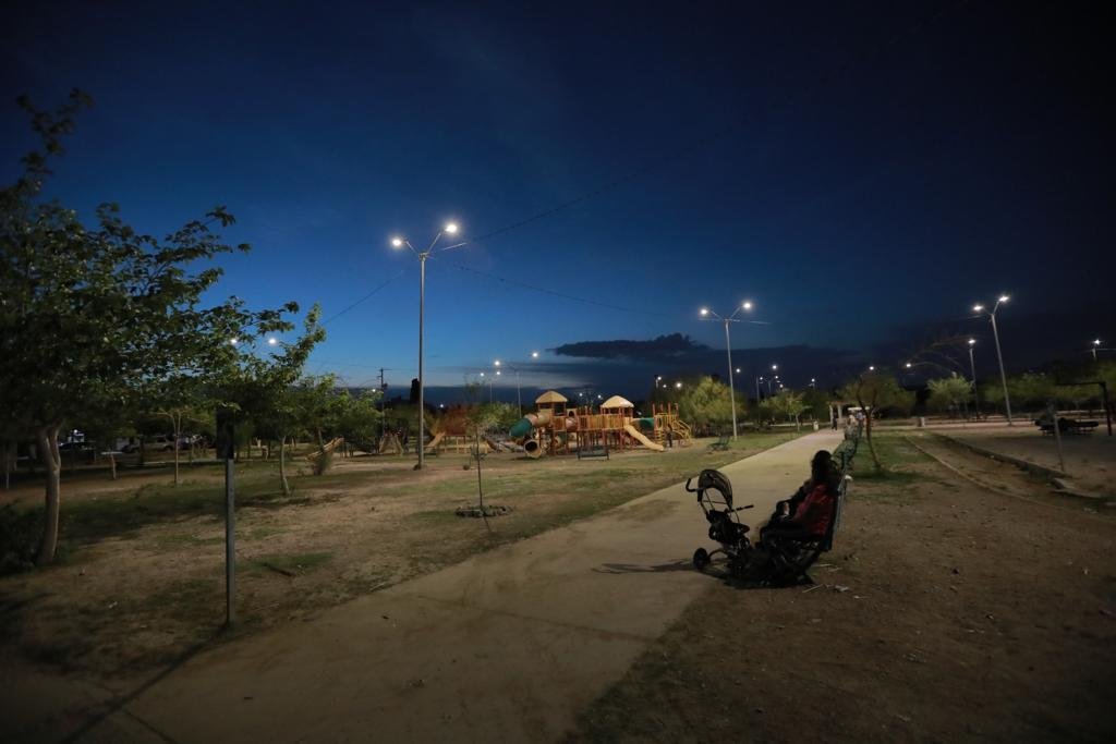 En el área ubicada entre las calles Manuel Quevedo Reyes y Rene Mascareñas de la colonia Los Alcaldes, se hizo la instalación de 23 lámparas led de 80 watts y 10 más de 60 watts, las cuales iluminaron gran parte del parque que es visitado por los colonos.