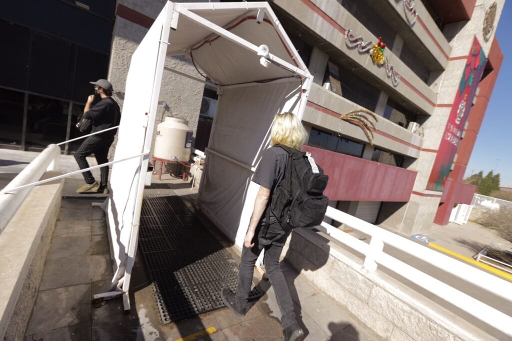 En la Unidad Administrativa Lic. Benito Juárez, así como en las diferentes dependencias municipales, continúa aplicándose el protocolo de salud para trabajadores y usuarios, entre ellas la aplicación de gel y toma de temperatura, además del uso de arcos para desinfectar.