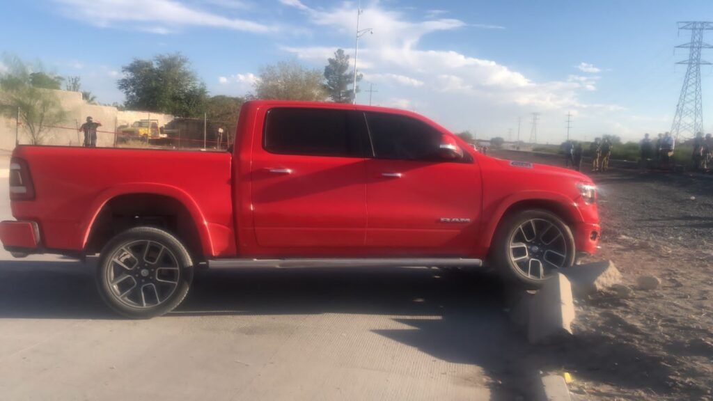 Agentes municipales que realizaban labores de prevención y vigilancia en la colonia Kilómetro 20, atendieron un llamado realizado al número de emergencia 911, donde reportaron un robo de una camioneta de la marca Dodge Ram Laramie 1500, color rojo, modelo 2019, con placas de circulación del Estado de Texas.