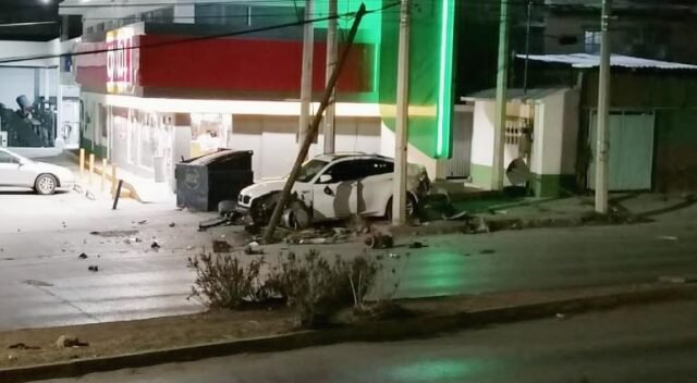 El “Neto” manejaba un auto BMW color blanco, con vidrios polarizados y blindaje, el cual chocó contra un poste de madera, un señalamiento vial y un hidrante al subir a una banqueta en una gasolinera de la cadena comercial OXXO.