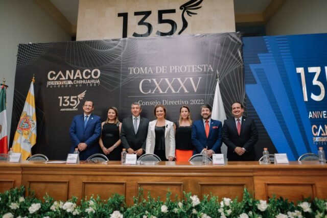 La Gobernadora Maru Campos Galván, tomó protesta a los integrantes de la nueva mesa directiva de la Cámara Nacional de Comercio, Servicios y Turismo (Canaco) de la ciudad de Chihuahua, presidida Omar Armendáriz Jurado. Evento que tomó lugar en la sede del organismo empresarial.