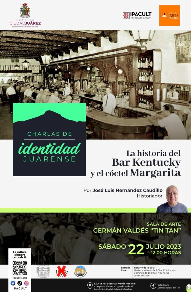 “La Historia del Bar Kentucky y el Coctel Margarita”, es el tema que se abordará por parte del ponente José Luis Hernández Caudillo, en la Sala de Arte Germán Valdés “Tin Tan” ubicado en la calle Begonias número 620, de la colonia Bellavista. La entrada es gratuita para toda la familia.