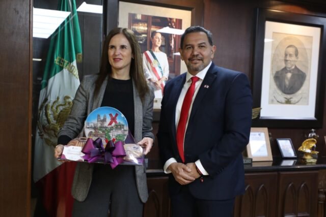 La Cónsul acudió al despacho del alcalde, en la Unidad Administrativa “Lic. Benito Juárez”, donde coincidieron en la importancia de fortalecer relaciones comerciales debido a las circunstancias que viven ambos países con Estados Unidos.