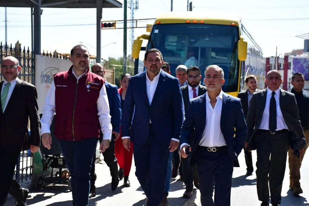 El Presidente Municipal, Cruz Pérez Cuéllar y el director general de los Centros de Formación para el Trabajo (CECATI), José Gonzalo Espina Miranda, hicieron una visita simbólica al Puente Internacional Paso del Norte, donde se tomaron una fotografía conmemorativa luego de la firma de un convenio de colaboración entre la institución educativa y el Municipio.