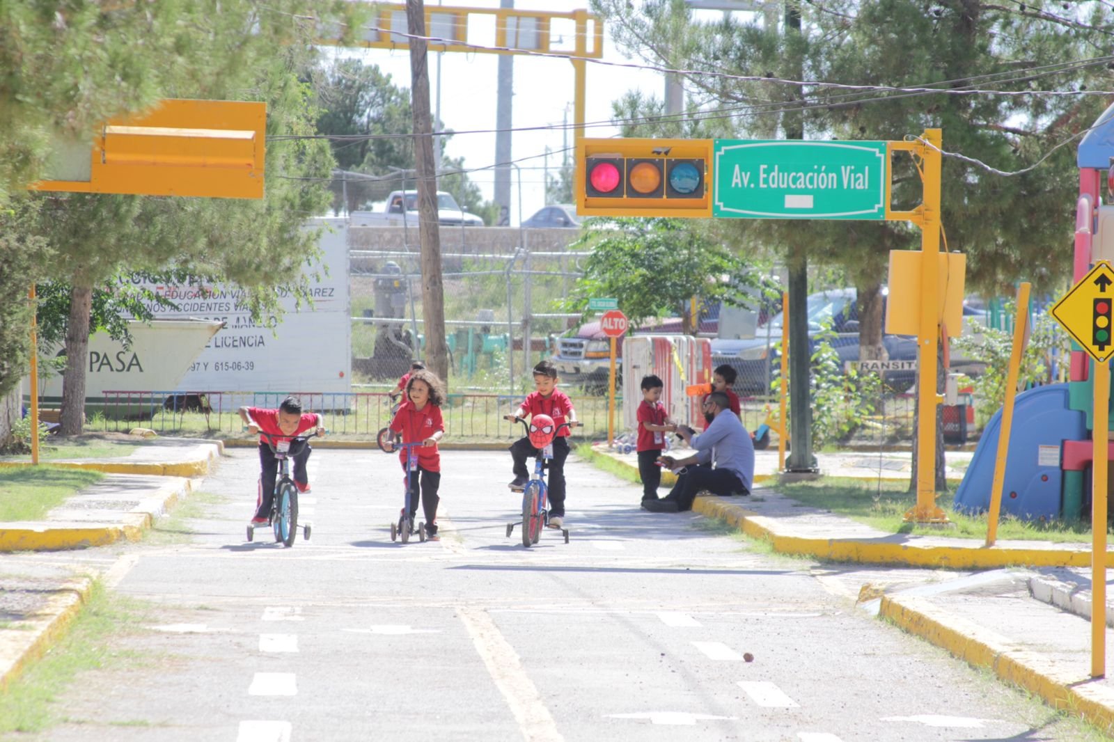 Con la finalidad de aprender sobre temas de seguridad vial y a la vez divertirse, 52 pequeños del jardín de niños Sor Juana Inés De la Cruz, 41 padres de familia y cinco docentes visitaron hoy las instalaciones de la mini ciudad vial.