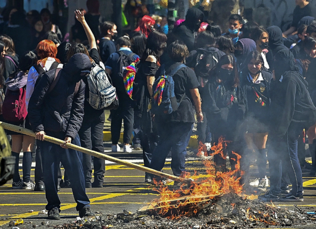 SANTIAGO- Por segundo día consecutivo, los estudiantes secundarios chilenos realizaron este jueves una masiva manifestación en distintos puntos de Santiago, en el marco del fallido proceso constituyente que finalizó con el plebiscito.